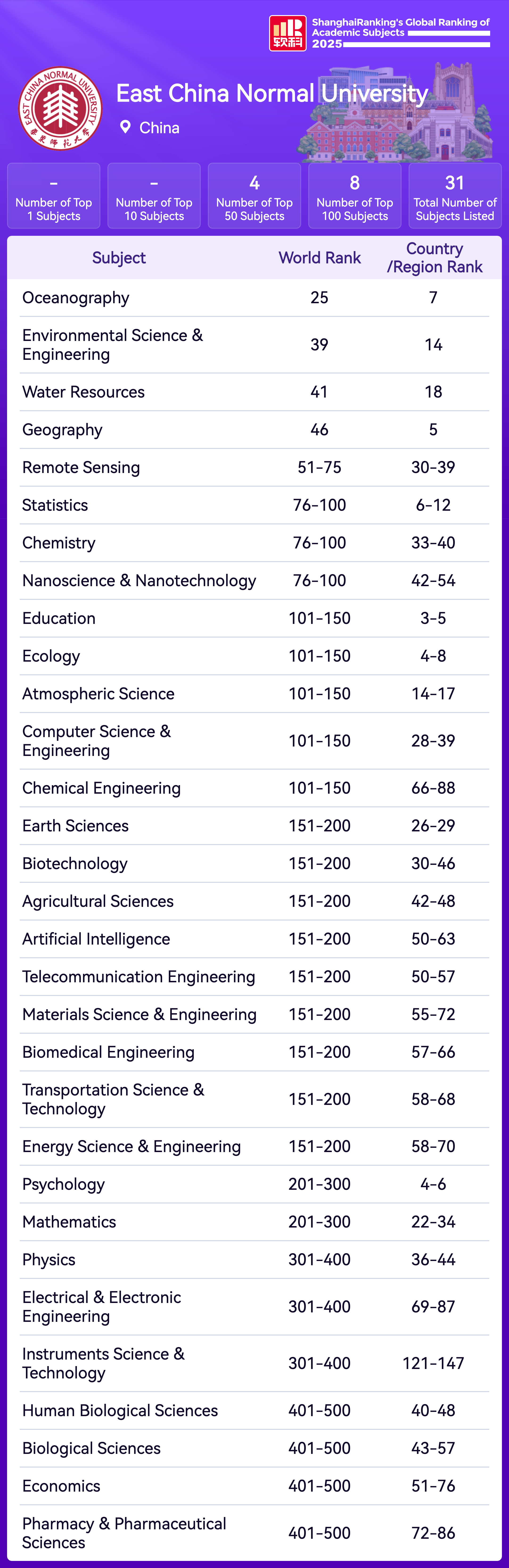 Founded in Shanghai in October 1951, East China Normal University (ECNU) is one of the most prestigious universities in China and is sponsored by the national programs “Project 211” and “Project 985”. Adhering to the university motto of " Seek Truth, Foster Originality, and Live up to the Name of a Teacher", ECNU has made enormous achievements in talent-training, scientific research, community service and international exchanges. In so doing, it has significantly contributed to the development of Chinese basic education and teacher training, and the advancement of economics, sciences and society, both locally and nationally. The development and transformation of the country and the modern international metropolis of Shanghai bring huge opportunities to the university for its progress. ECNU is steadily and enthusiastically working towards its goal of establishing itself as an internationally renowned high-level research university, with a number of first-class disciplines and a well coordinated discipline development, while also taking the lead in the development of China's teacher training.