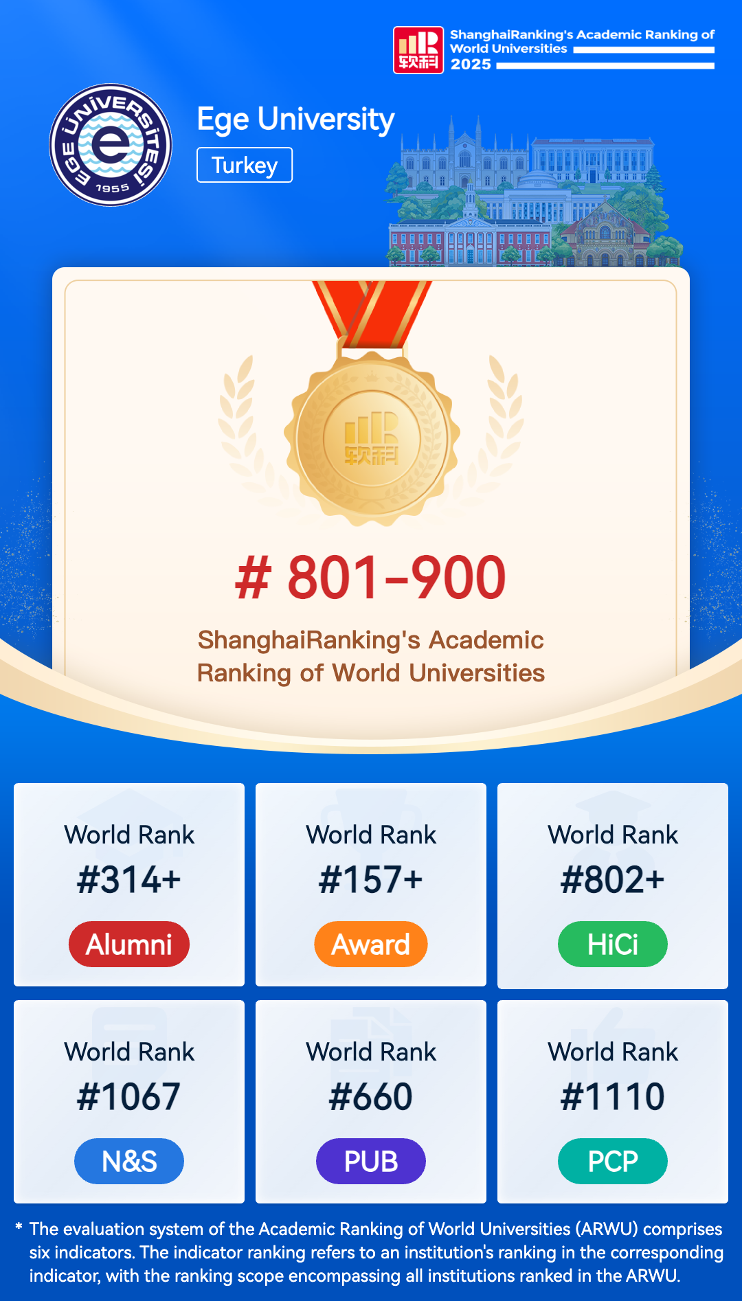 The Academic Ranking of World Universities (ARWU) is recognized as the precursor of global university rankings and the most trustworthy one. ARWU presents the world's top 1000 research universities annually based on transparent methodology and objective third-party data.