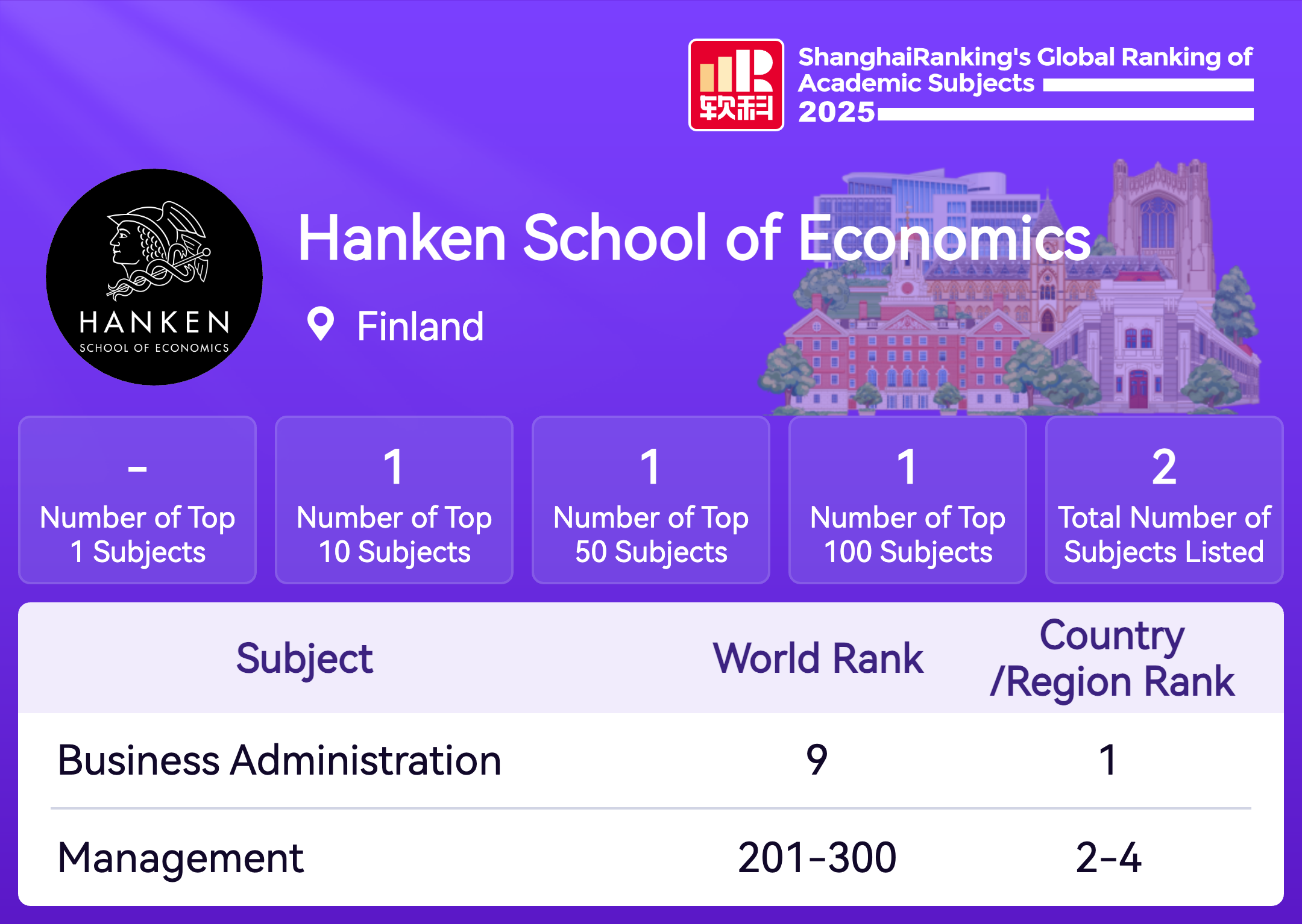 Hanken School of Economics, one of the oldest business schools in the Nordic countries, was established more than one hundred years ago. Today, Hanken is the only stand-alone business school in Finland. Our strategy includes profiling the School as a genuinely international and research-oriented business school with close ties to the corporate world. We offer academic programmes on all levels (BSc, MSc and PhD) at two locations, in Helsinki and Vaasa. Hanken School of Economics holds the three most prestigious international accreditations for business schools: EQUIS, AACSB and AMBA. Only one percent of all business schools worldwide have achieved this.