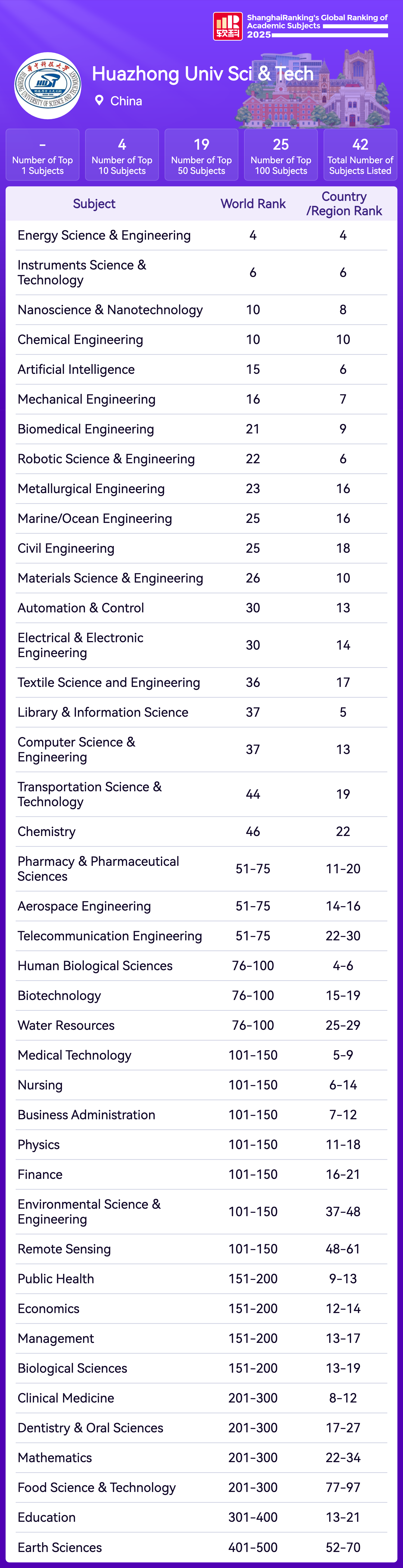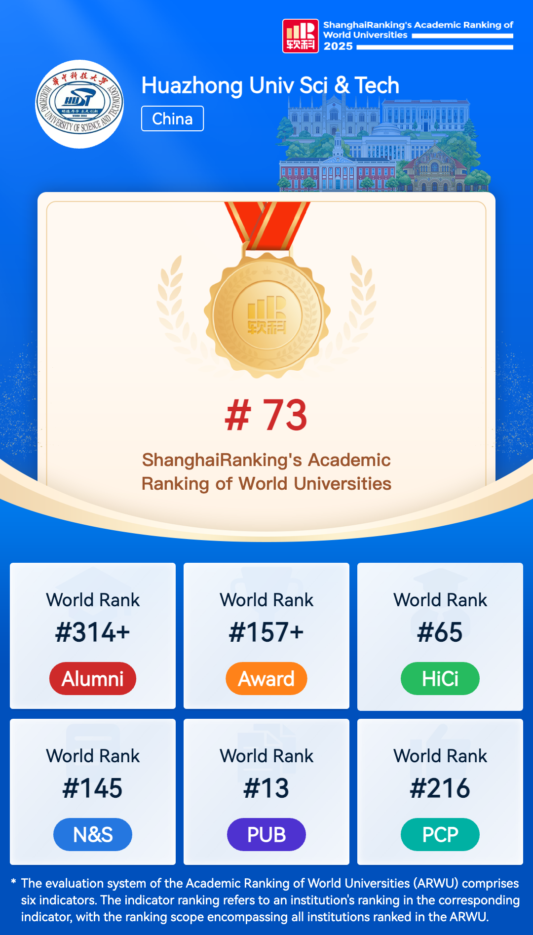 Huazhong University of Science and Technology (HUST) is a national key university directly under the administration of the Ministry of Education of P. R. China, and is among the first Universities joining the national “211 Project†and “985 Projectâ€. It was founded on May 26, 2000 as a result of the merger of the former Huazhong University of Science and Technology, Tongji Medical University and Wuhan Urban Construction Institute. At present, the University has eleven disciplines: engineering, medicine, management, science, philosophy, economics, law, education, literature, history, agriculture and art, offering a variety of degree programs, including 94 undergraduate programs, 291 graduate programs, 238 PhD programs. There are 32 post-doctoral research centers, 7 national key disciplines, 15 national key subdisciplines. 9 disciplines of HUST have reached top 1% of ESI, showing the increasing strength of international academic influence. Meanwhile, in the latest evaluation of the disciplines, mechanical engineering, optical engineering and public health and preventive medicine rank top one, electrical engineering top two, bio-medical engineering top three, journalism, power engineering and thermal physics and public administration top three. Another nine disciplines are ranked top ten inChina. HUST covers an area of over 1,153 acres with picturesque environment, elegant surroundings and has 72% greenery coverage, which has been honored as the “University in the Forestâ€. It offers its students and staff first-class logistic service, efficient network service and abundant library resources. HUST has also entered into partnerships with more than 100 renowned universities and research institutions. Annually over 100 famous scholars and experts come to visit HUST and give lectures. During the construction of “211 Project†and “985 Projectâ€, HUST has broken traditional discipline boundaries, integrated multi-disciplinary resources, played an active role in developing the national innovation system, built the high level and cross-disciplinary scientific innovation platform, and the innovation base of philosophy and social science. Nowadays, the Wuhan National Laboratory for Optoelectronics, supported by HUST, is now under full construction. Meanwhile, the pulsed high magnetic field facility, which is a major science and technology infrastructure project, has been approved. Besides, the University has five national key laboratories, two national specialized laboratories, one key national defense laboratory, one national engineering laboratory, thirty-seven provincial key laboratories, three key laboratories of the Ministry of Education (Level B), six national engineering(technology) research centers, eight provincial(technology) research centers, three cooperative research centers of the Ministry of Education and four provincial humanities and social science research bases. Focusing on combining learning and research with manufacturing and considering technology innovation and promotion as its task, HUST has established a group of advanced science and technology enterprises with “HUAGONG TECH CO., LTD†as a gleaming example. The University Science Park becomes the national “863†industrialization base, and the University science and technology enterprise incubator is honored as the “National Hi-Tech Innovation Service Centerâ€. The “four step jump†pattern for science and technology incubation and industrialization has won acclaim from other universities across the country. National leaders, such as Hu Jintao, Li Changchun, spoke highly of the university’s achievements in hi-tech industry during their visit to HUST. Although the HUST did make a great progress in the past, it will keep on stepping forward with full vigor and vitality, aiming to gain its name as a world class university and create a brilliant future.