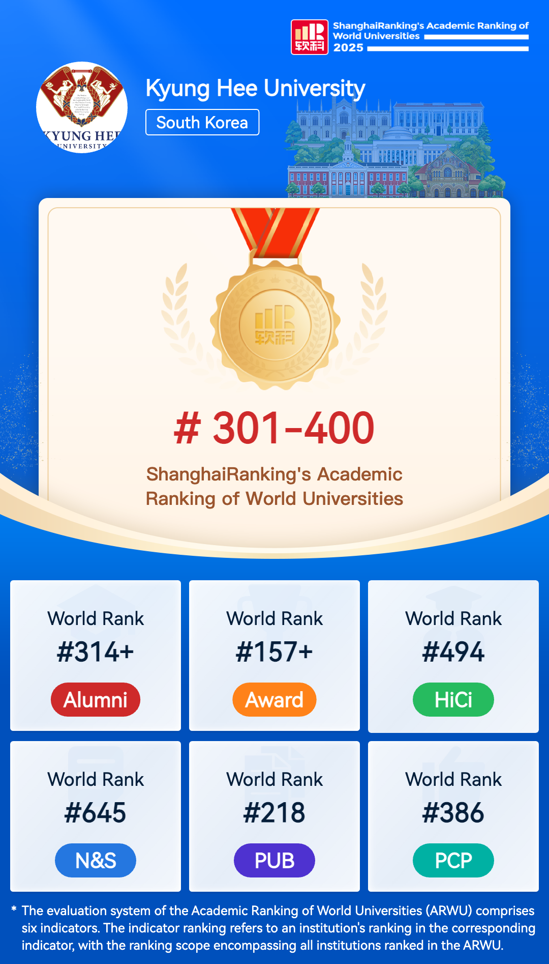 Kyung Hee University was founded in 1949. Since its founding, Kyung Hee has pursued the Spirit of "Scholarship and Peace" as well as the founding principle of "creating a civilized world." For the past 70 years, the University has developed remarkably, contributing to the fulfillment of a "cultural world for humanity" as the leader of the future of academics and the creator of common values for humanity. In particular, the past five years have witnessed notable growth and a rise in the University's stature through forward-looking and adventurous endeavors in education, research, public service, and praxis. Kyung Hee University is preparing for a second leap forward while seeking a new paradigm of future university development. It reflected on the fundamental mission of the University and established a new vision and goals for becoming a true university of the future. In this new vision for a university that transcends the traditional notion of the university as a mere physical location and the limitations of an exclusive academe, Kyung Hee University will rise to international prestige and develop into an international center of research, education, and praxis. Pursuing "Global Eminence" on a foundation of academic excellence, Kyung Hee University will become an academic community that fulfills its social responsibility by cultivating world citizens with the capacity for communication and public service.