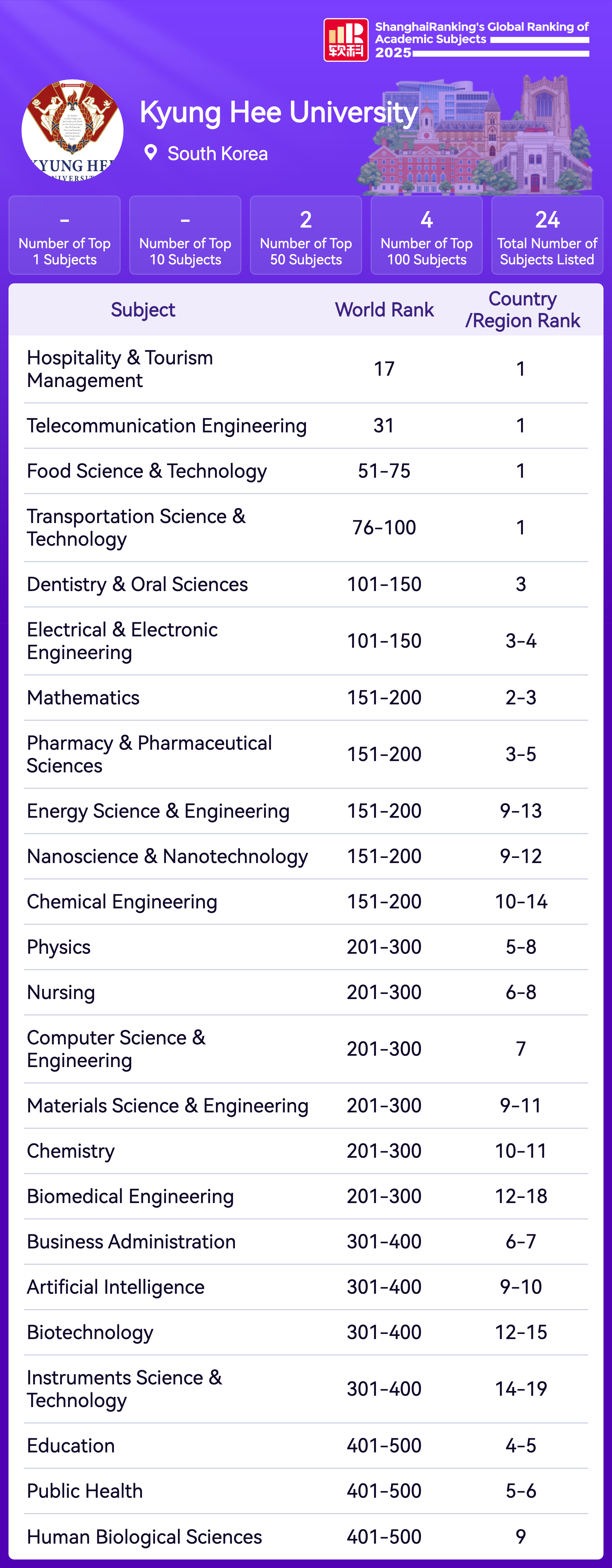 | Subject | Rank |