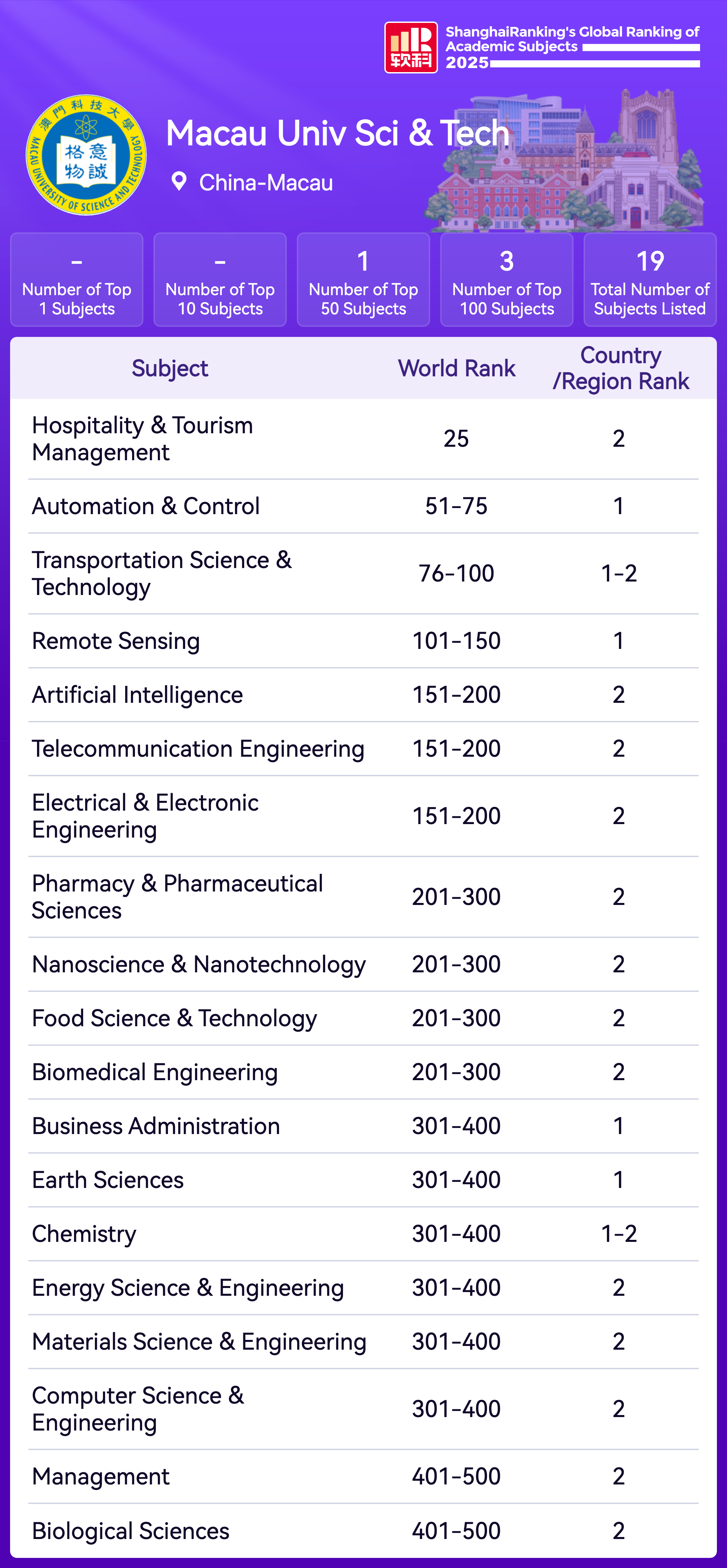 | Subject | Rank |