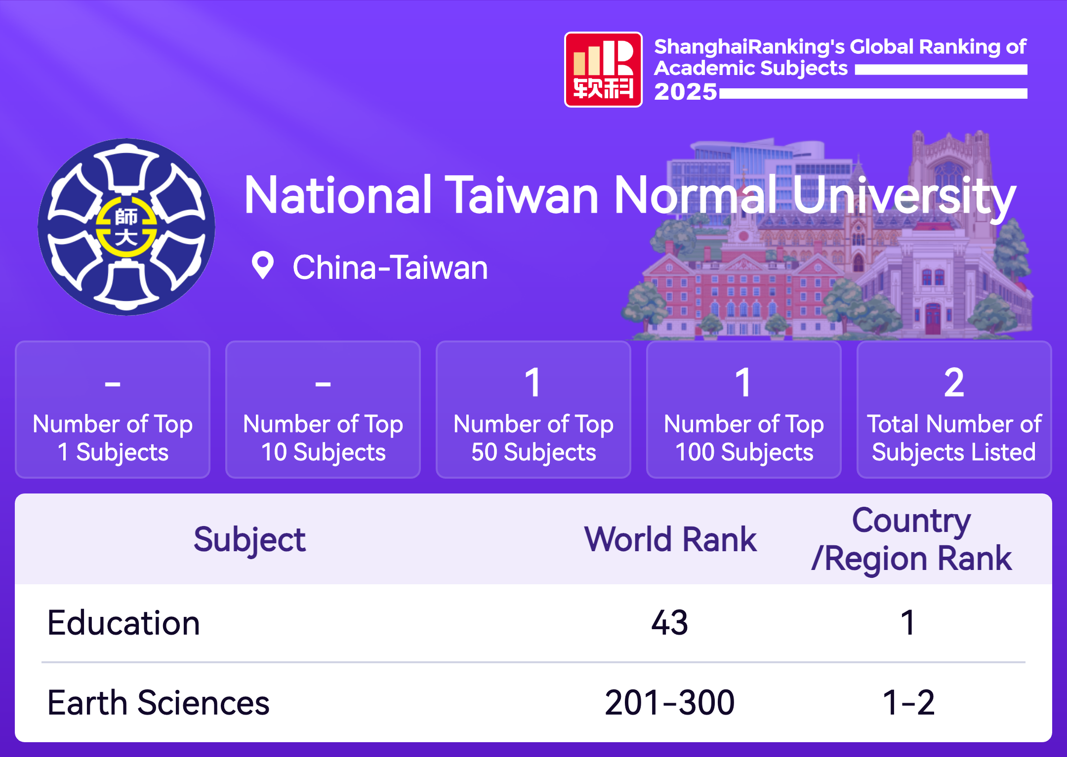 Founded in 1922, National Taiwan Normal University (NTNU) played a vital role in shaping the nation through education as it first established as an educator training institute. Today, NTNU had successfully transformed into a comprehensive university with a high caliber of research excellence and holds a leading position in the fields of Education, Arts and Humanities, and Chinese Language Teaching. Besides, it is also characterized by the many influential educators and researchers it has nurtured over the years. NTNU has expanded to three campuses and offers one of the widest spectrum of academic programs in Taiwan with its 9 colleges, including Education, Liberal Arts, Science, Arts, Technology and Engineering, Sports and Recreation, International Studies and Social Sciences, Music, and Management. With the ranking of No.1 by internationalization in Taiwan in the QS World University Rankings 2018, NTNU has drawn more than 7,500 students from over 80 countries each year, appreciating our heritage in teacher training, holistic education and the world-renowned Chinese language program. With a stimulating academic climate, NTNU not only proffers to the caring community of students, faculty and staff, but also embraces the cultural diversity of Taiwan as its main campus located in the hub of the country’s dynamic capital, Taipei.