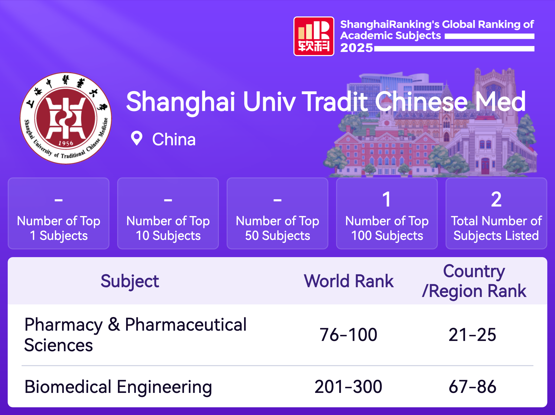 Pharmacy & Pharmaceutical Sciences | 76-100 |