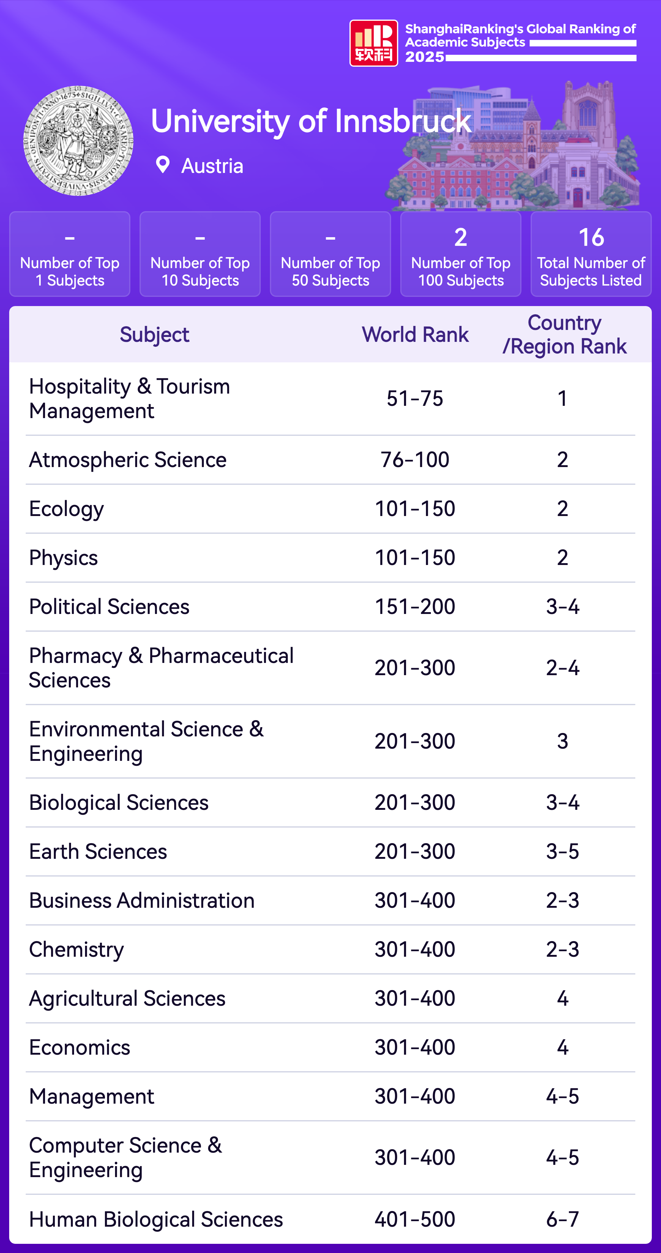 | Subject | Rank |