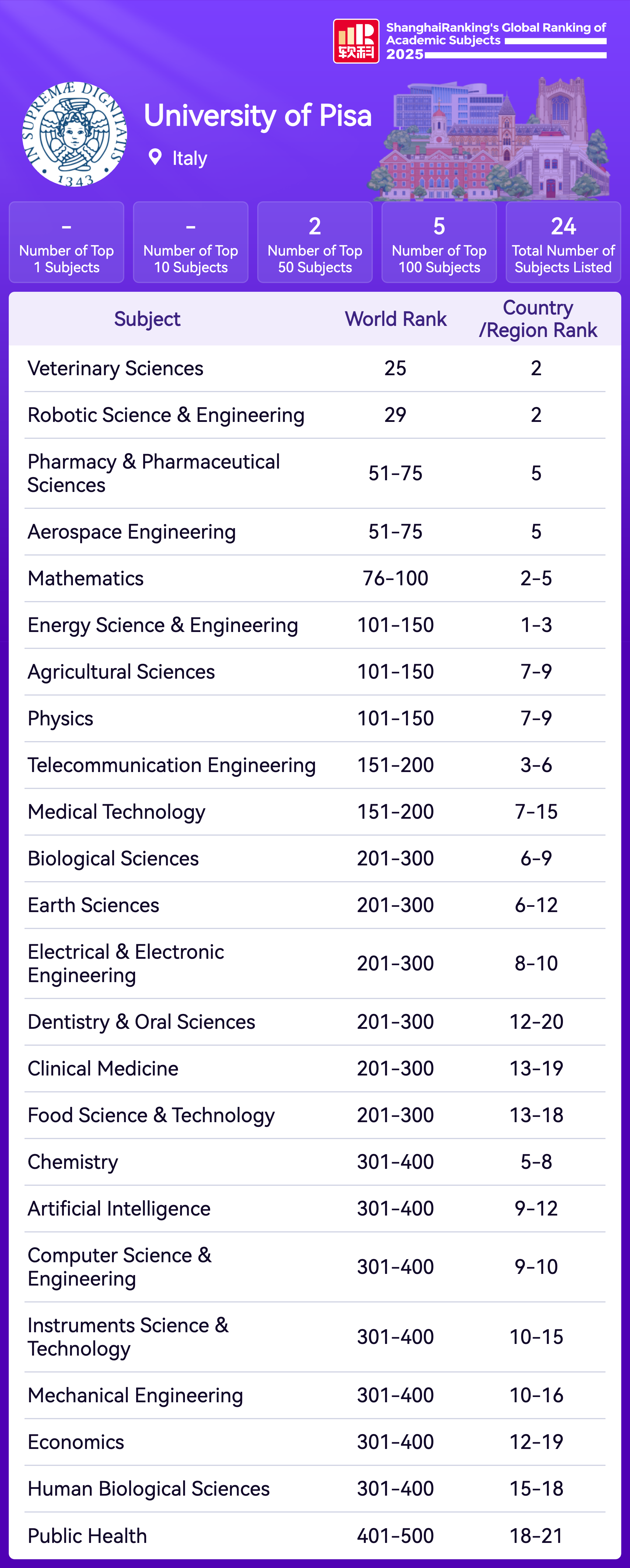 | Subject | Rank |