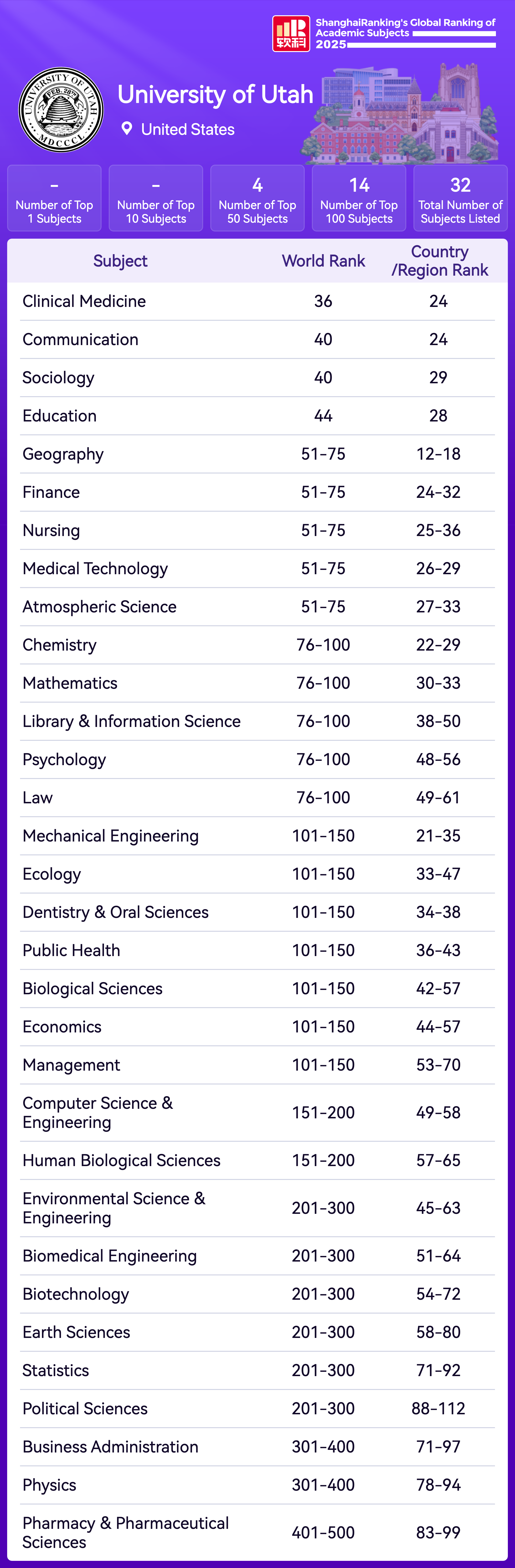 The University of Utah is a top-tier public research institution and one of only a handful of institutions in the country with both an academic campus and a research hospital located on the same campus. It is committed to teaching, research, public life, and health care and has focused heavily on ensuring students have support to complete their degrees in a timely manner and are well prepared for successful lives after graduation. In 2019, the university was selected as a new member of the Association of American Universities—an invitation-only, prestigious group of 65 leading research institutions marked by excellence in academic expertise and research impact, student success, and securing resources in support of core missions. The University of Utah has the highest graduation rate, the lowest average debt at graduation, and the highest average salary for graduates of any public institution in the state—and well above the national median. Over the past nine years, the U has increased its six-year graduation rate by 16%. To achieve this success, the U focused on improving the advisor-student ratio and increasing advising, increasing availability of critical courses and online offerings, and strategically using scholarships to help students avoid the need to work outside of school. A new income-share agreement launched in 2019 is an innovative way to help students complete their degrees faster. U administration also announced a new campus innovation challenge aimed at incubating ideas to accelerate baccalaureate degree completion. Salt Lake is the University of Utah’s “college city,” pairing outdoor adventure—including world-class skiing and five national parks (plus low-cost campus equipment rentals and outings to help students explore)—with sophisticated urban offerings from Utah Jazz NBA games to Broadway shows. However, students don’t have to leave campus to experience outstanding music, theater, and dance performances. Talented students and faculty create and perform hundreds of shows each year, and the student government has hosted concerts featuring such artists as B.o.B and Icona Pop. Recent speakers have included former U.S. Vice President Joe Biden and the creator of Humans of New York. Salt Lake City is top in the nation for diversity of jobs, according to LinkUp, which means there is an abundance of companies providing internship and employment opportunities. And, when students land that job downtown, their transportation is covered. U students have access to public transportation to, from, and around campus and the Salt Lake Valley for no additional cost. The U offers an affordable investment in a high-quality and high-value degree by having the lowest out-of-state cost of attendance in the Pac-12, along with the opportunity to meet requirements for in-state tuition after just one year. As a leader in global research and innovation, the U provides students with exciting ways to discover and nurture their interests. From Lassonde Studios (an on-campus entrepreneurial center) to its international campus in Incheon, South Korea, to its hundreds of undergrad research opportunities, the possibilities are only limited by the imagination. The University of Utah’s mission is to foster student success by preparing students from diverse backgrounds for lives of impact as leaders and citizens. The U generates and shares new knowledge, discoveries, and innovations, and engages local and global communities to promote education, health, and quality of life. These contributions, in addition to responsible stewardship of the U’s intellectual, physical, and financial resources, ensure the long‐term success and viability of the institution.