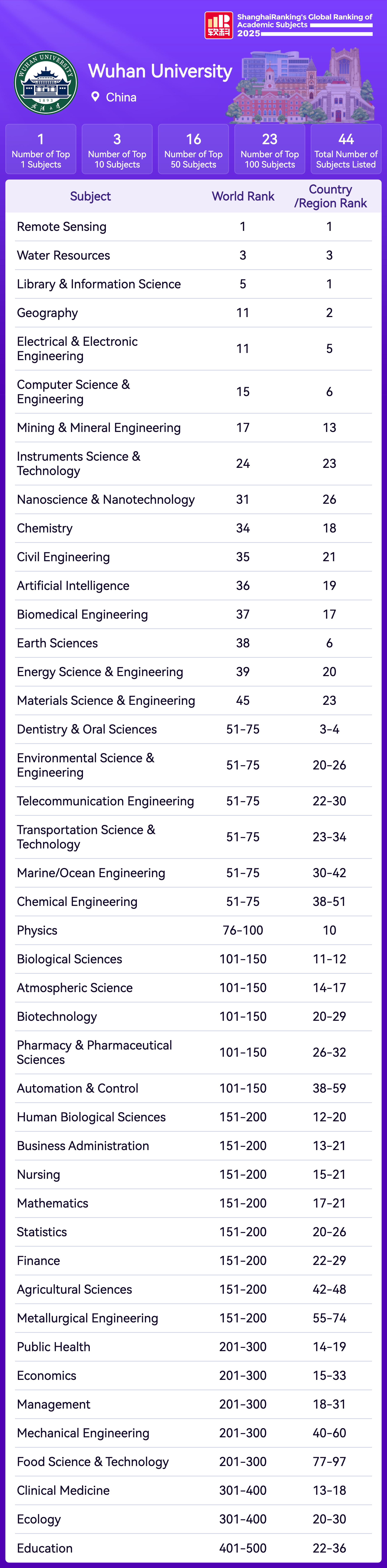 Wuhan University (WHU) is a comprehensive and key national university directly under the administration of the Ministry of Education. It is also one of the "211 Project" and "985 Project"universities with full support in the construction and development from the central and local government of China. The history of Wuhan University can be traced back to Ziqiang Institute, which was founded in 1893 by Zhang Zhidong, the then governor of Hubei Province and Hunan Province in the late Qing Dynasty. In the process of development and evolution, the institute changed its name several times before it was finally named Wuhan National University in 1928. It is one of the earliest comprehensive national universities in modern China. By the end of 1946, the university had established 6 colleges, the colleges of liberal art, law, sciences, engineering, agriculture and medicine. In 2000, an amalgamation of the former Wuhan University, Wuhan University of Hydraulic and Electric Engineering, Wuhan Technical University of Surveying and Mapping, and Hubei Medical University was announced, which ushered in a new era in its 100-odd years of development. For the past century, Wuhan University has built an elegant palatial architectural complex of primitive simplicity which blends perfectly the eastern architectural style with that of the west. It is honored as the "Most Beautiful University in China." Furthermore, Wuhan University's centennial humanistic accumulation boils down to its succinct motto, that is, "Improve Oneself, Promote Perseverance, Seek Truth and Make Innovations." Since its establishment, Wuhan University has cultivated more than 300 thousand professional talents in various occupations, among whom there are over 100 members of the Chinese Academy of Science and the Chinese Academy of Engineering. They have made great contribution to the national construction and social advancement. The remarkable achievements of Wuhan University have won itself an extensive international reputation. In 1999, the world renowned journal Science listed Wuhan University as one of the most prominent institutions of higher education in China. Burgeoning are the international exchanges and cooperation of Wuhan University in recent years. It has established cooperative relationship with more than 300 universities and research institutes in over 40 countries and regions. Now Wuhan University is endeavoring to shape itself into a world-class comprehensive research university domestically and internationally.